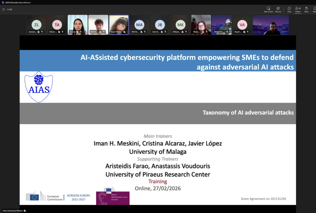 On February 27, the University of Malaga organized an online training event dedicated to the study of adversarial attacks targeting Artificial Intelligence (AI) and Machine Learning (ML) models. The session focused on presenting key research outcomes developed within the framework of the AIAS MSCA project, particularly those reported in Deliverable 3.2: “Taxonomy of Adversarial AI Attacks.”