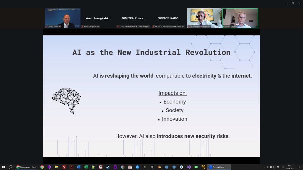 Last week, Prof. Christos Xenakis participated in the online workshop on Artificial Intelligence and Digital Ethics in the Public Sector, organised by DIMITRA Education & Consulting SA.